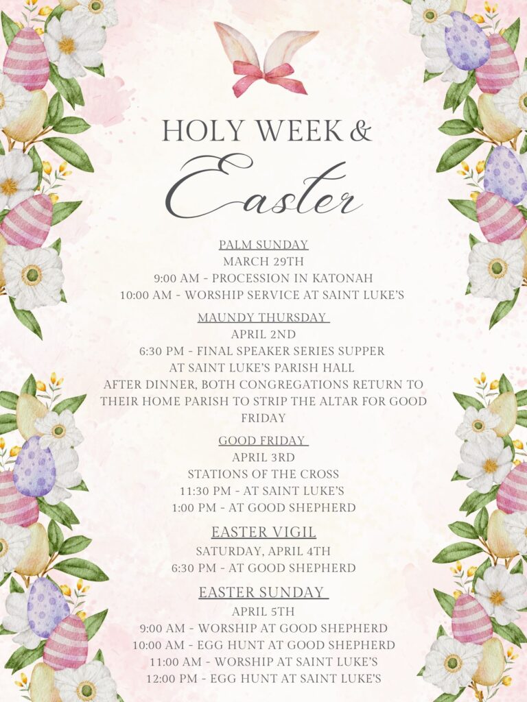 Wednesday, March 25th 6:30 PM Good Shepherd Theme – Self-Examination.