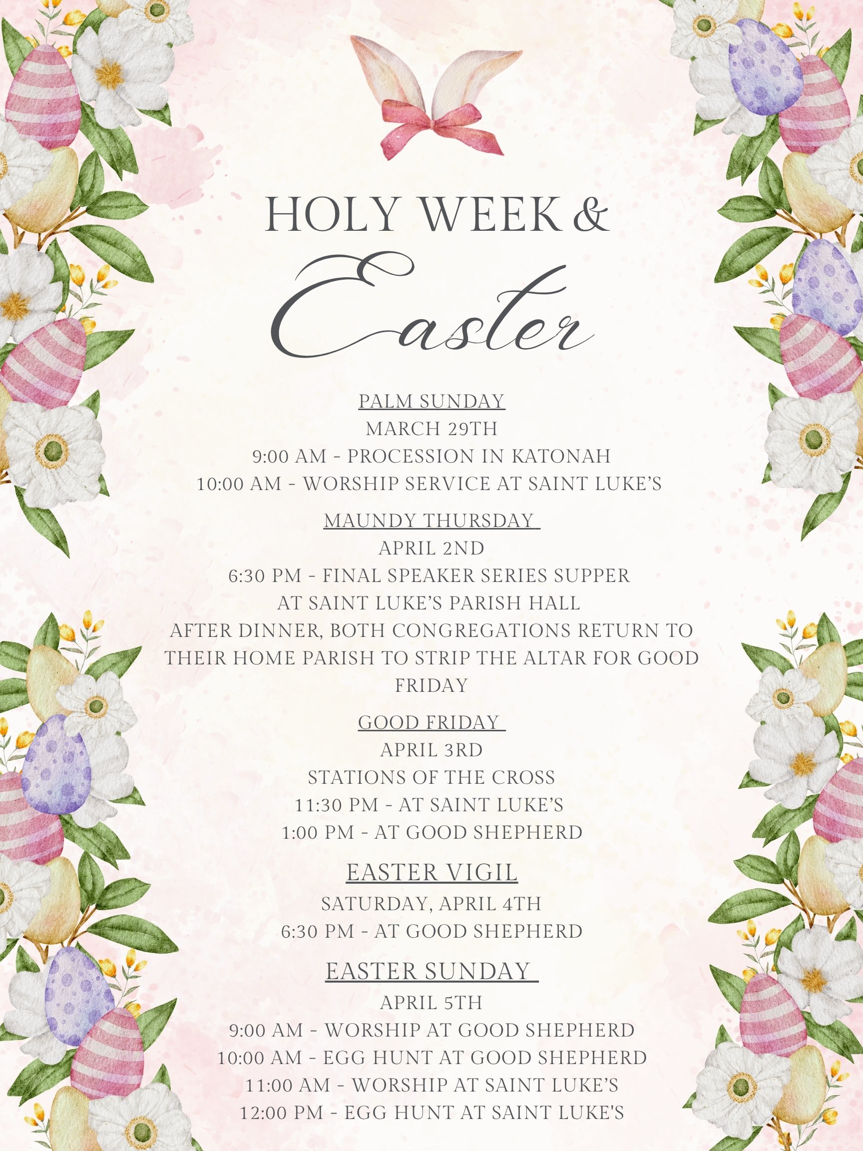 Thursday, April 2 6:30 St. Luke’s, Katonah Theme – Maundy Thursday