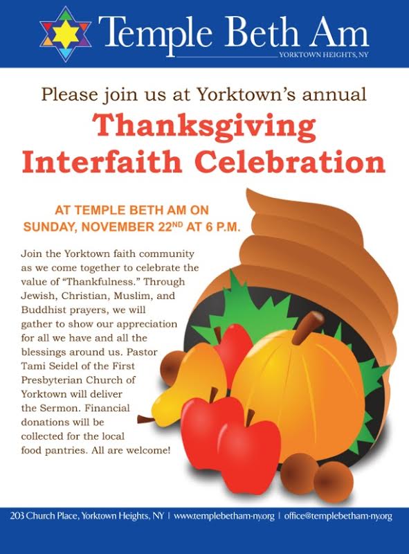 6:00pm – Interfaith Thanksgiving Service at Temple Beth Am in Yorktown